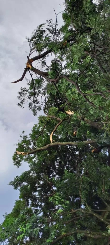 De acordo com relatos de moradores, o temporal também destruiu hortas, derrubou árvores e comprometeu a rede elétrica, deixando residências sem energia.