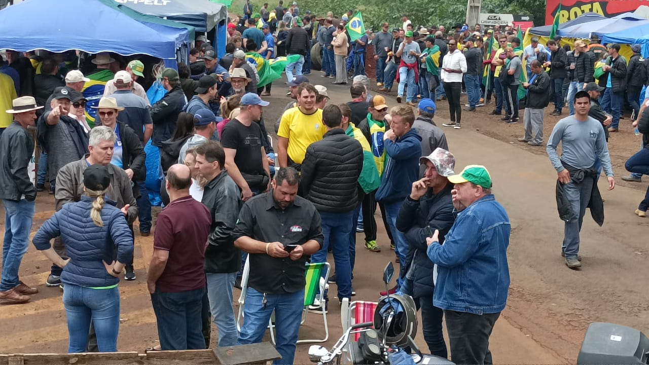 Usando bandeiras do Brasil e verde e amarelo, os manifestantes são de Marechal Rondon e municípios da região. Agricultores, caminhoneiros, empresários, trabalhadores e representantes de diversas categorias se reúnem no local. Clique e saiba mais sobre a manifestação em Marechal Rondon.