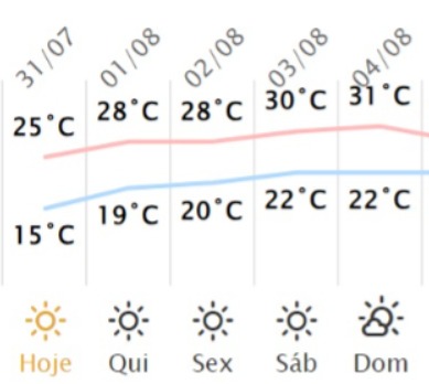 No decorrer do dia a temperatura pode chegar à casa dos 25ºC. Não há previsão de chuva para esta quarta-feira no município.