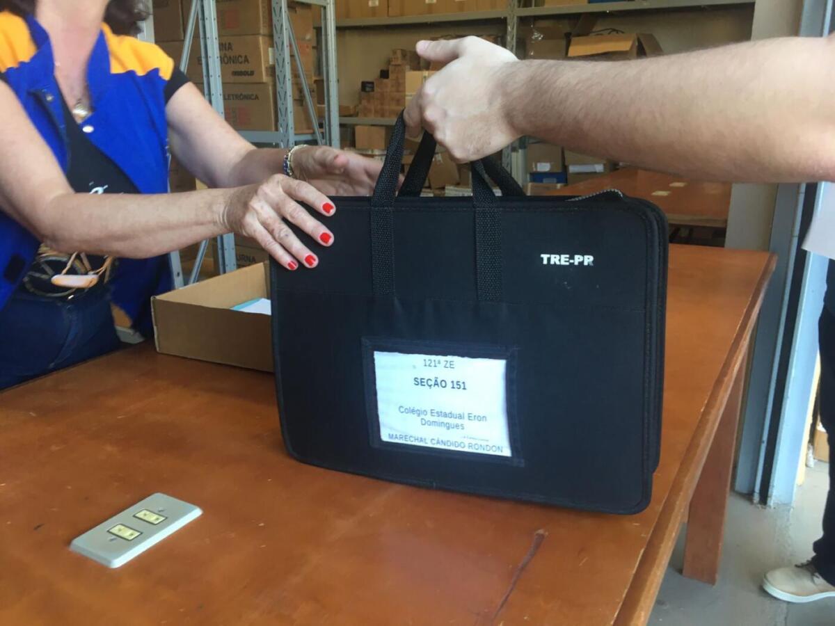 As urnas começaram a chegar ao Fórum Eleitoral de Marechal Cândido Rondon por volta das 17h20 deste domingo, 2 de outubro – 20 minutos após o horário previsto para o encerramento oficial da votação. A primeira urna entregue foi a de número 198, do Colégio Estadual Eron Domingues.