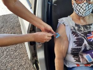 A vacinação é no sistema “drive thru”. Para receber a imunização é necessário estar munido do cartão SUS, CPF e cartão de vacina.