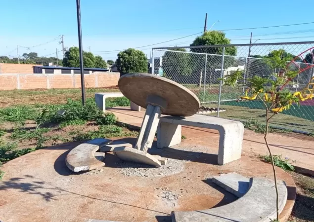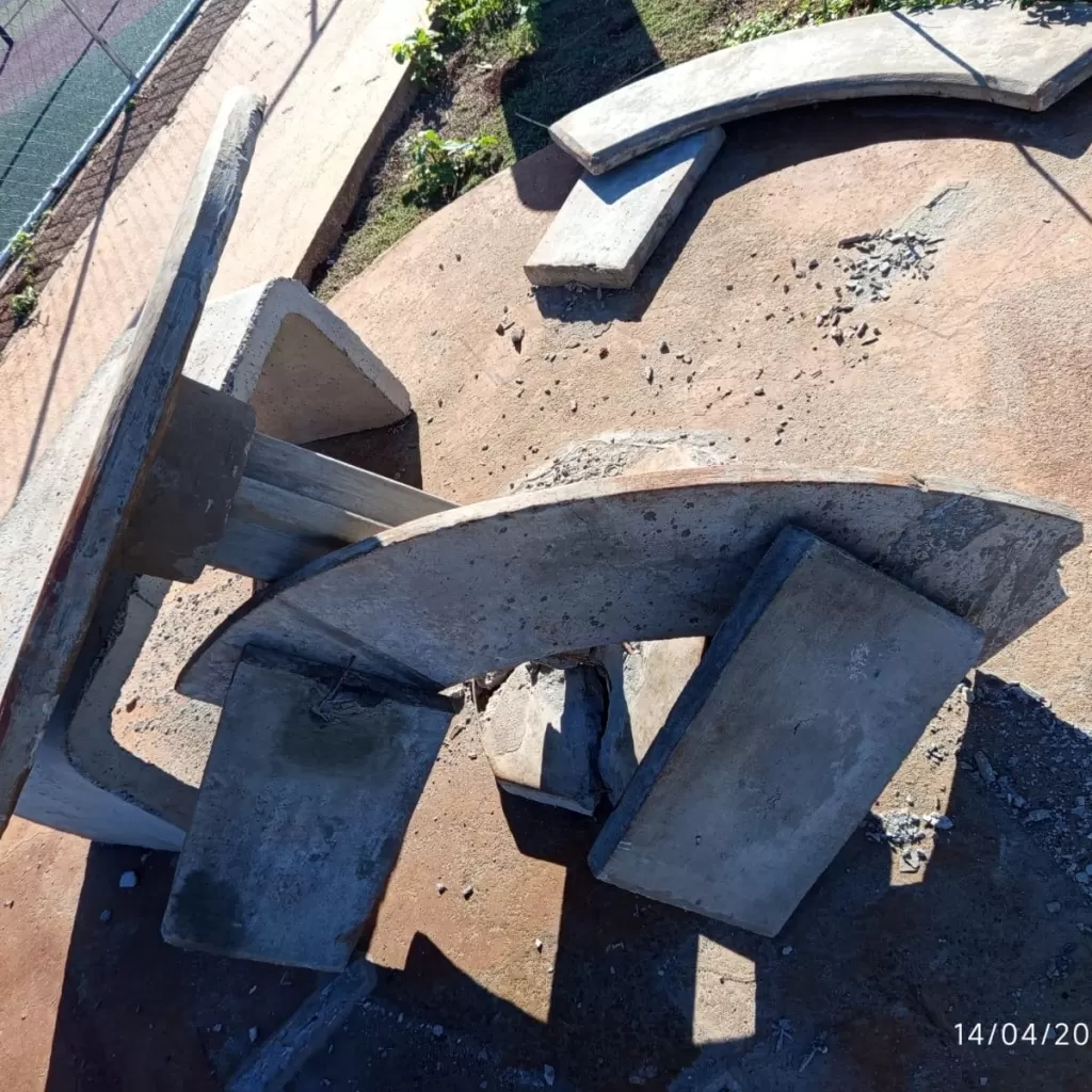 Servidores da Secretaria de Esporte e Lazer constataram, na manhã desta terça-feira (14), a depredação de equipamentos do local. Uma mesa e dois bancos de concreto foram quebrados, além de balanços e da tela que cerca o campo, que também foram vandalizados, evidenciando total falta de respeito com os espaços coletivos.