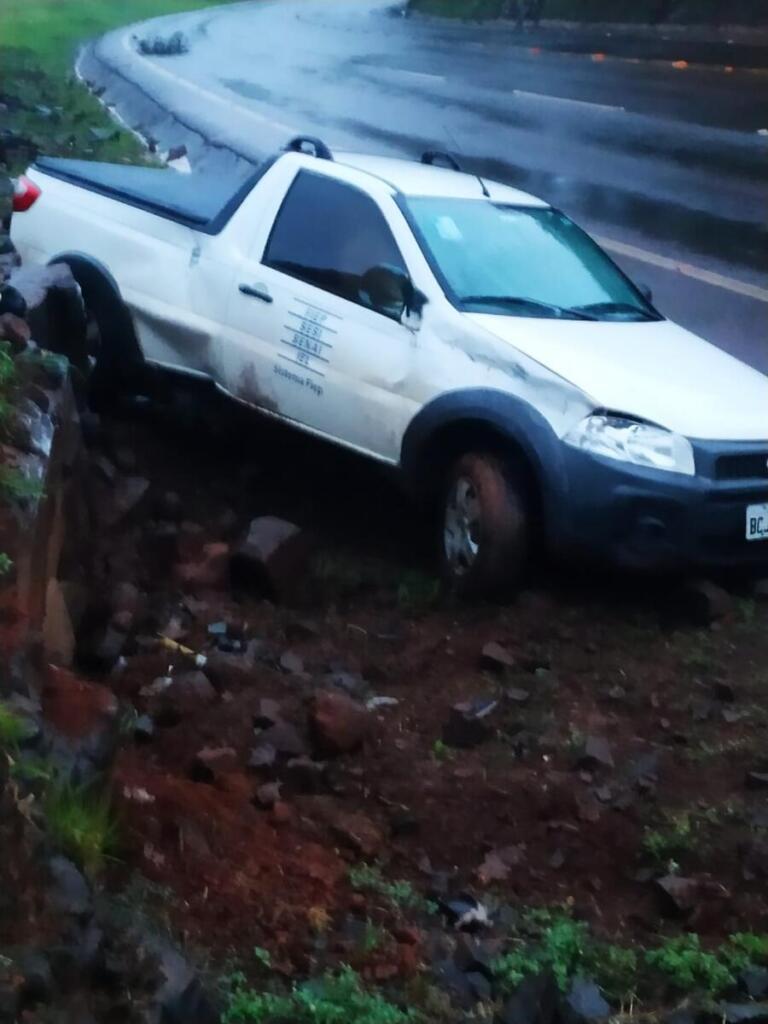 A condutora de um Fiat Strada acabou perdendo o controle da direção do veículo na rodovia e bateu contra uma rocha às margens da rodovia.