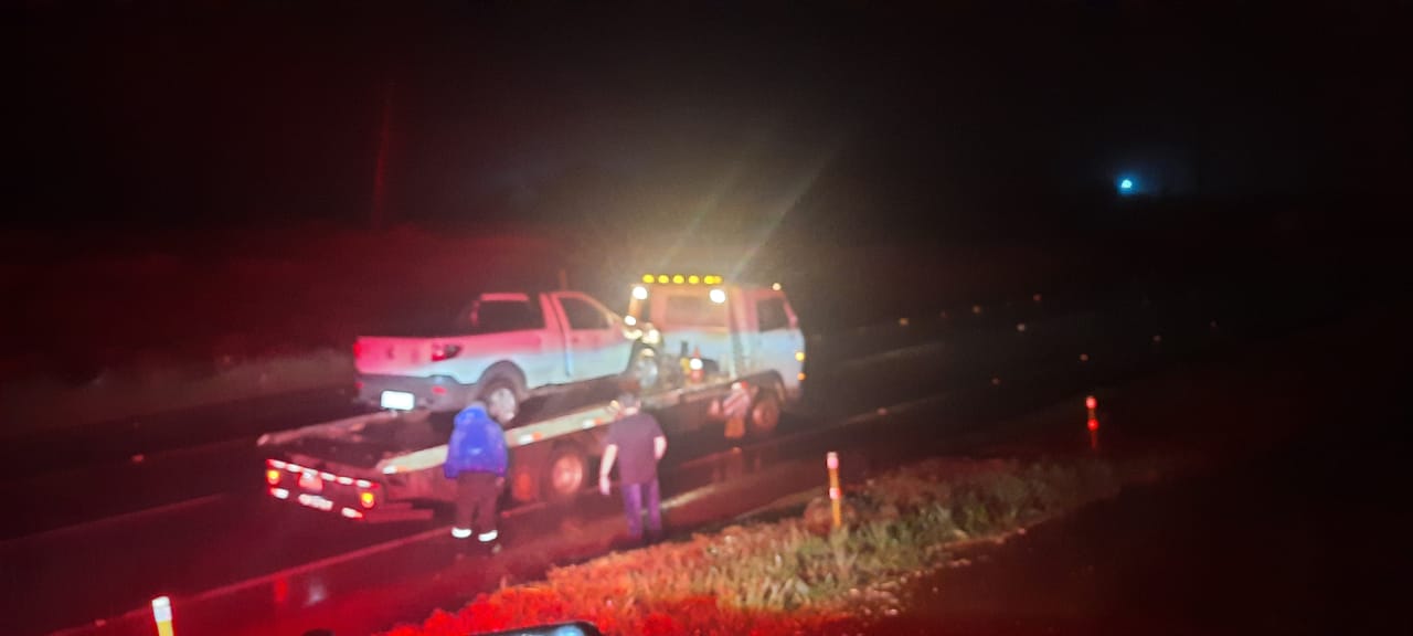 Uma equipe da PRE registrou o acidente. O veículo foi removido por um guincho enviado pela seguradora.
