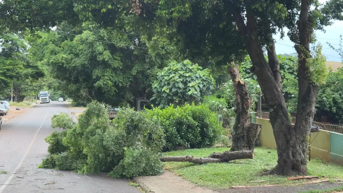 Depois de um dia de calor intenso e sensação de abafamento, o tempo virou no fim da tarde deste domingo (1º) em Marechal Cândido Rondon. Uma forte ventania antecedeu pancadas isoladas de chuva e provocou a queda de galhos em diferentes pontos da cidade.