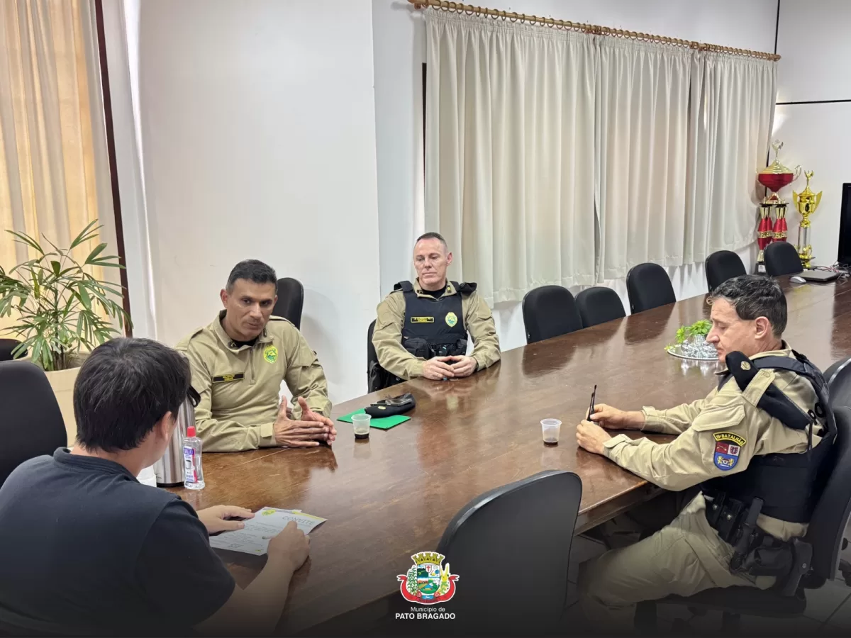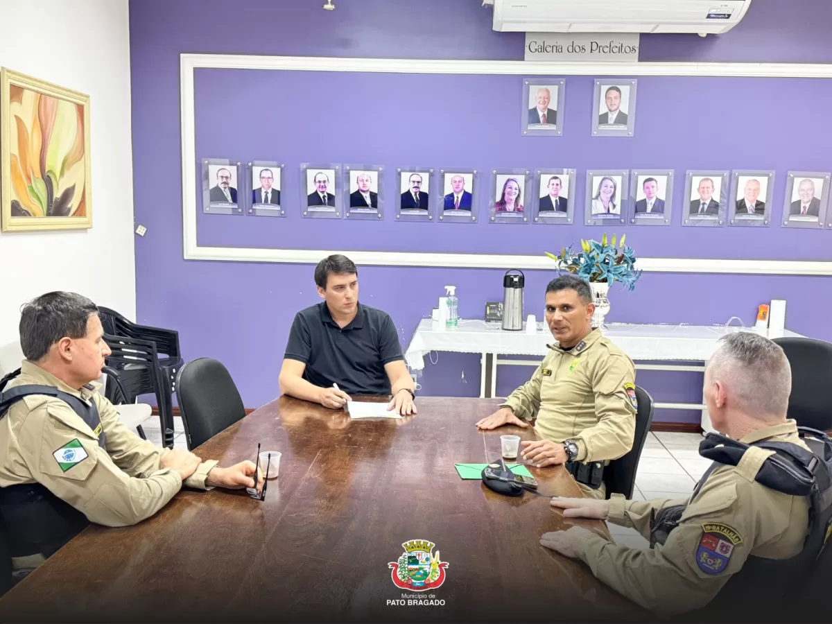 O prefeito de Pato Bragado, John Nodari, recebeu na quinta-feira (21) a visita do comandante do 19º Batalhão de Toledo, Tenente-Coronel Zorzi, acompanhado do Major Cezar e do comandante do Destacamento da Polícia Militar local, 2° Sargento Anilson. Durante o encontro, foram discutidos assuntos relacionados à segurança pública e apresentados convites para a comunidade e autoridades participarem das comemorações pelos 20 anos do batalhão.