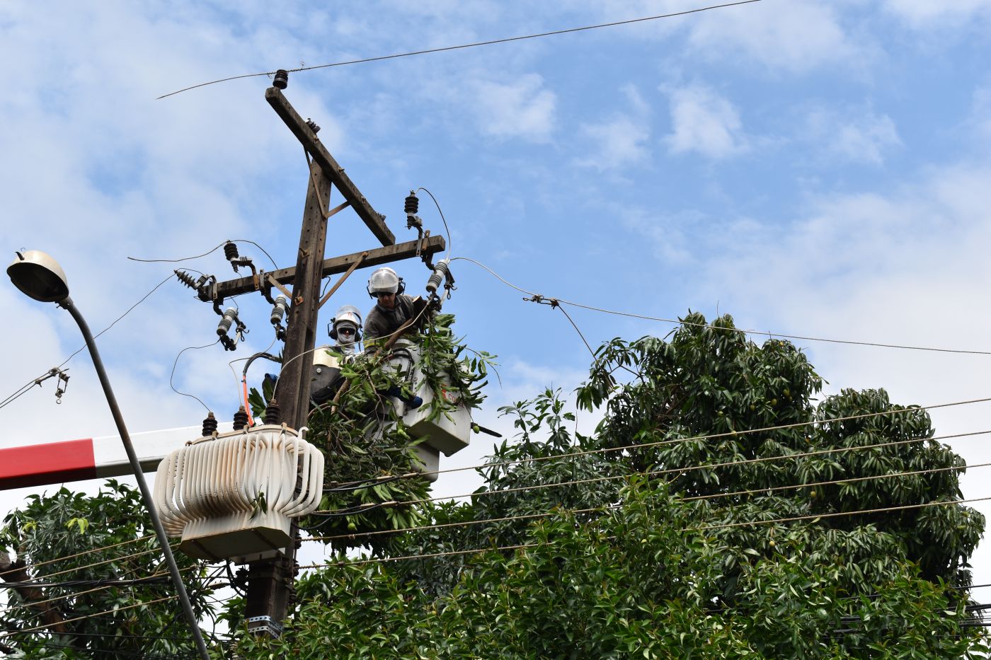 As equipes da companhia continuam trabalhando para restabelecer a energia da região.