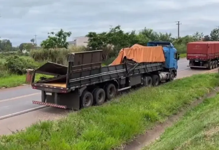 Conforme apurado, uma colisão traseira entre duas carretas provocou o derramamento da carga de cereais. A PRF foi acionada no início da tarde de terça-feira (12) e interditou parte da pista.