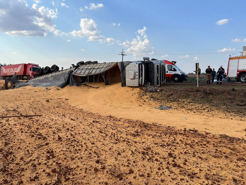 O condutor de uma carreta carregada de milho perdeu o controle da direção do veículo na rodovia PR-182, que liga os munícipios de Maripá e Toledo, e ela veio a tombar às margens da via, logo após a primeira curva depois do trevo. O acidente foi registrado na tarde desta quarta-feira (20).