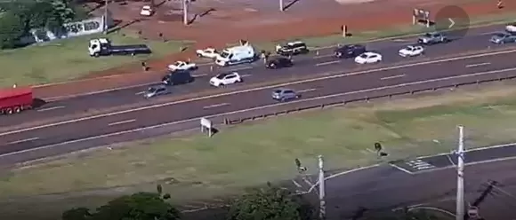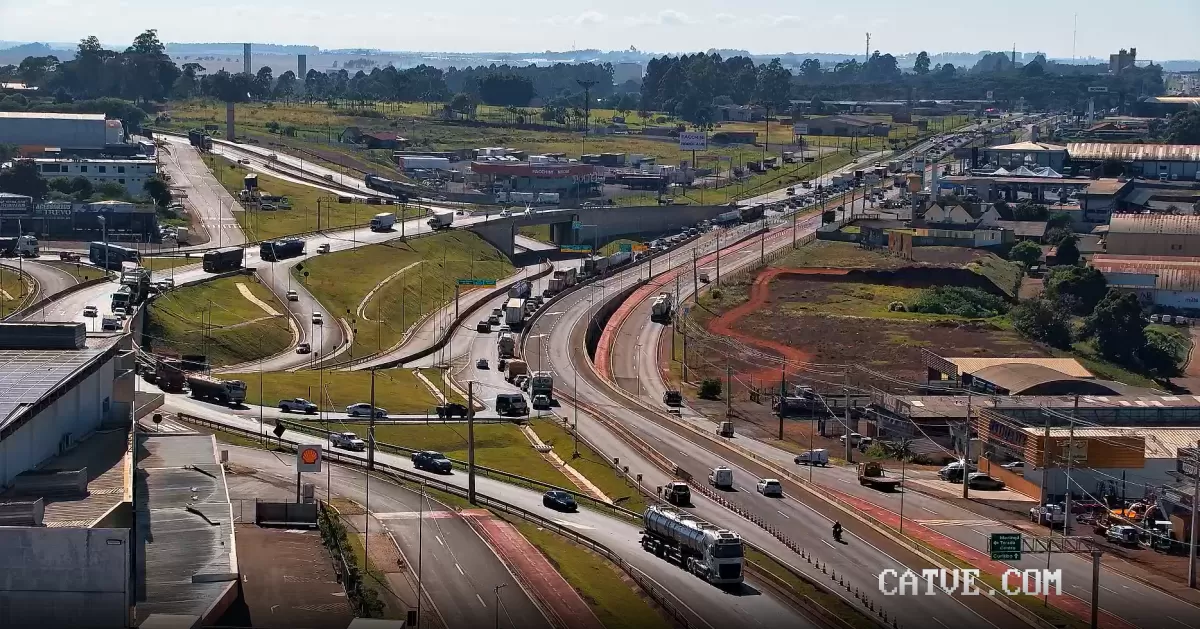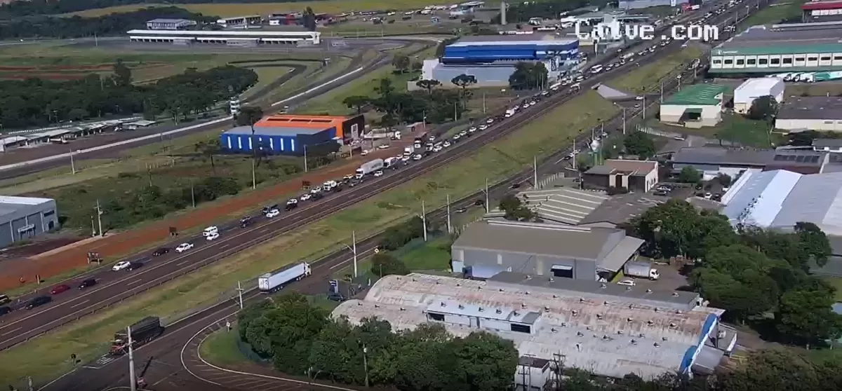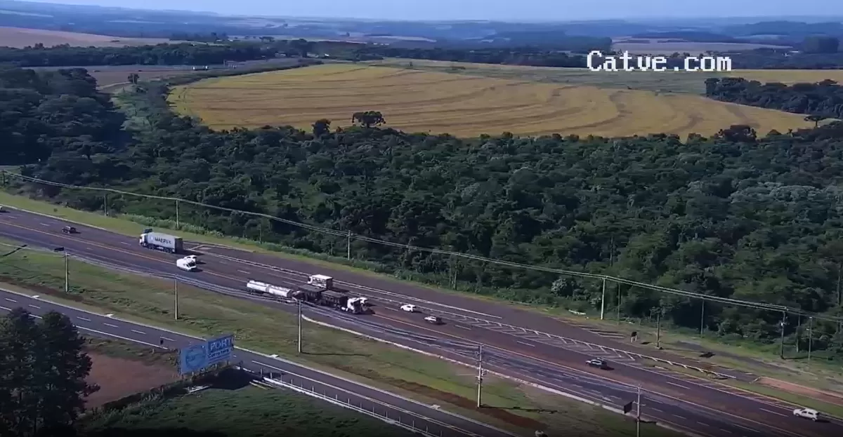 A câmera da CATVE instalada nas proximidades do Autódromo Zilmar Beux mostra a movimentação da PRF e da EPR Iguaçu, concessionária que administra a rodovia.