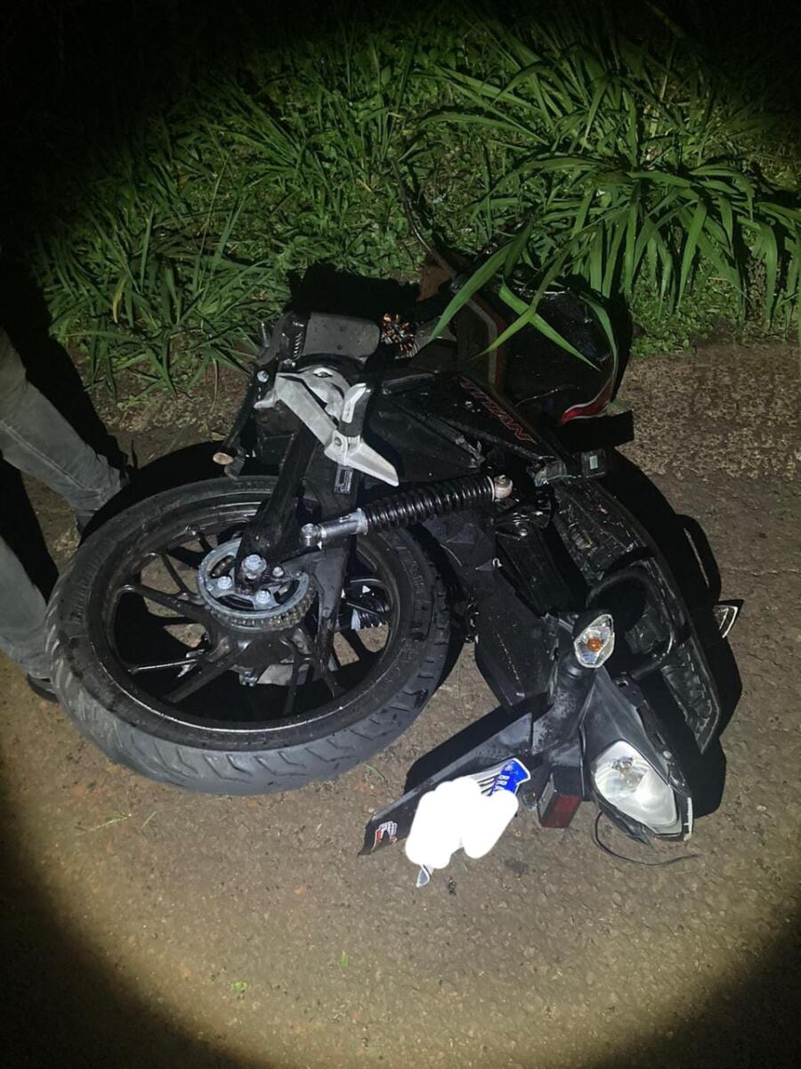 A colisão frontal envolveu um automovel Ecosport, placas da cidade de Sarandi, e uma motocicleta Honda CG, placa de Francisco Alves. A motocicleta partiu ao meio.