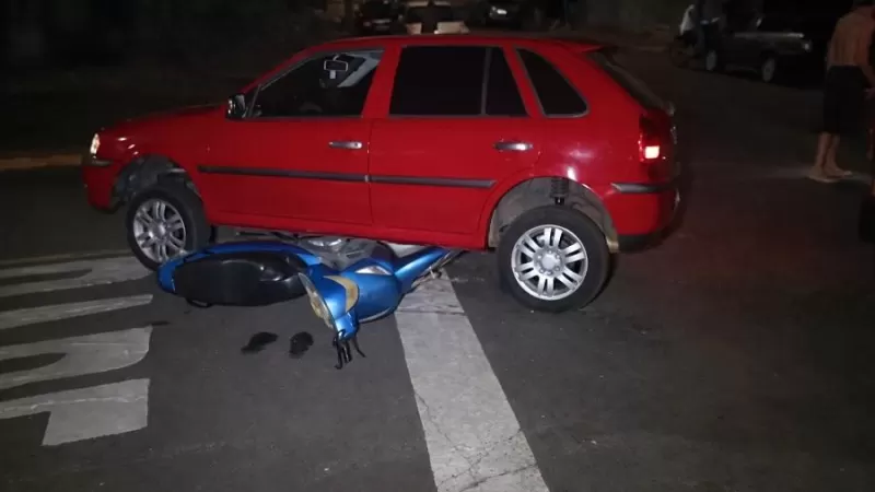 Um acidente de trânsito envolvendo um automóvel e uma motocicleta foi registrado na noite de domingo (8), no cruzamento da Rua Caldas Júnior com a Rua do Pinhal, no bairro Vila Pioneira, em Toledo.