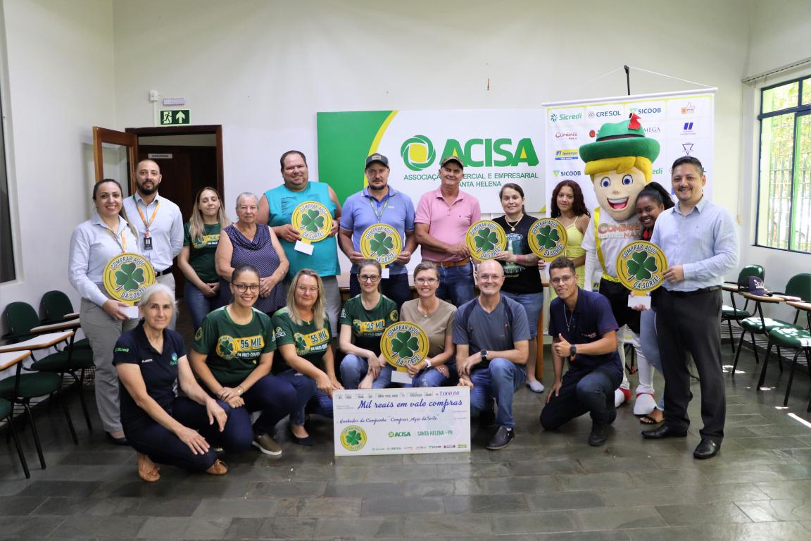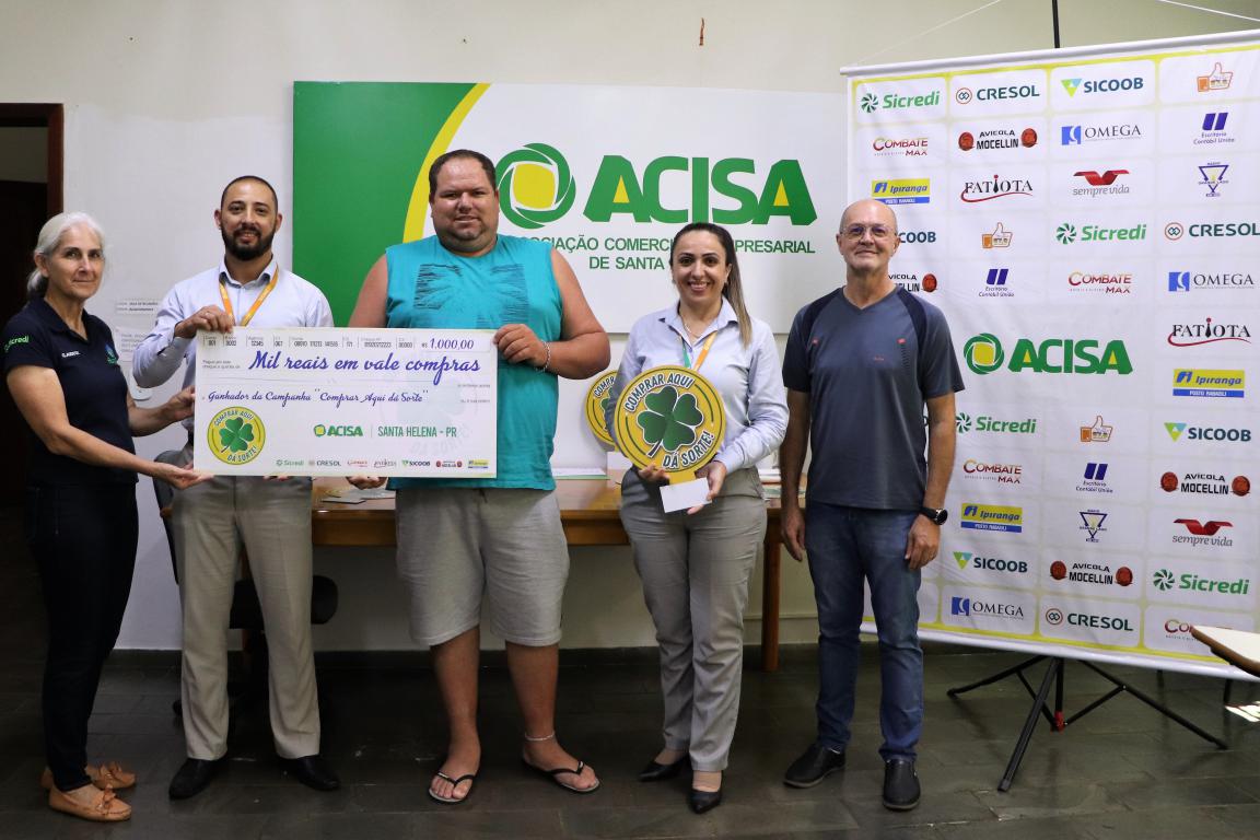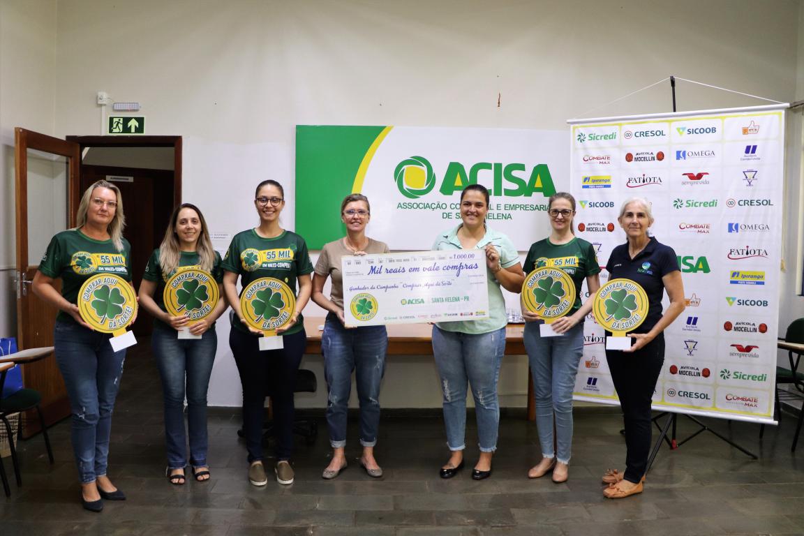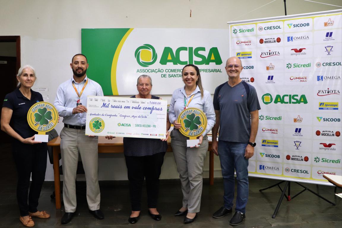 A Associação Comercial e Empresarial de Santa Helena entregou nesta segunda-feira (30), seis vales-compras de R$ 1 mil, um total de R$ 6 mil, para os últimos sorteados da campanha Comprar Aqui dá Sorte. Outros R$ 4mil já foram distribuídos aos ganhadores em sorteios que ocorreram em 15 de junho, relativo à promoção do Dia das Mães e 15 de setembro, contemplando a promoção do Dia dos Pais.
