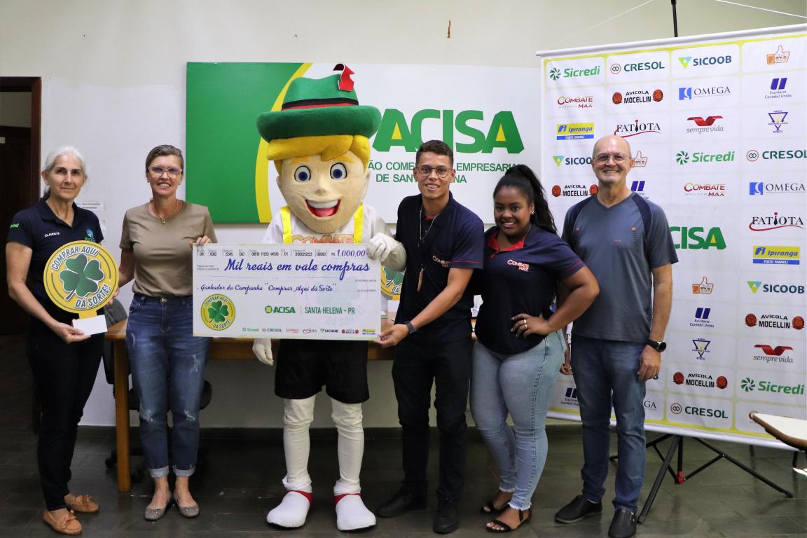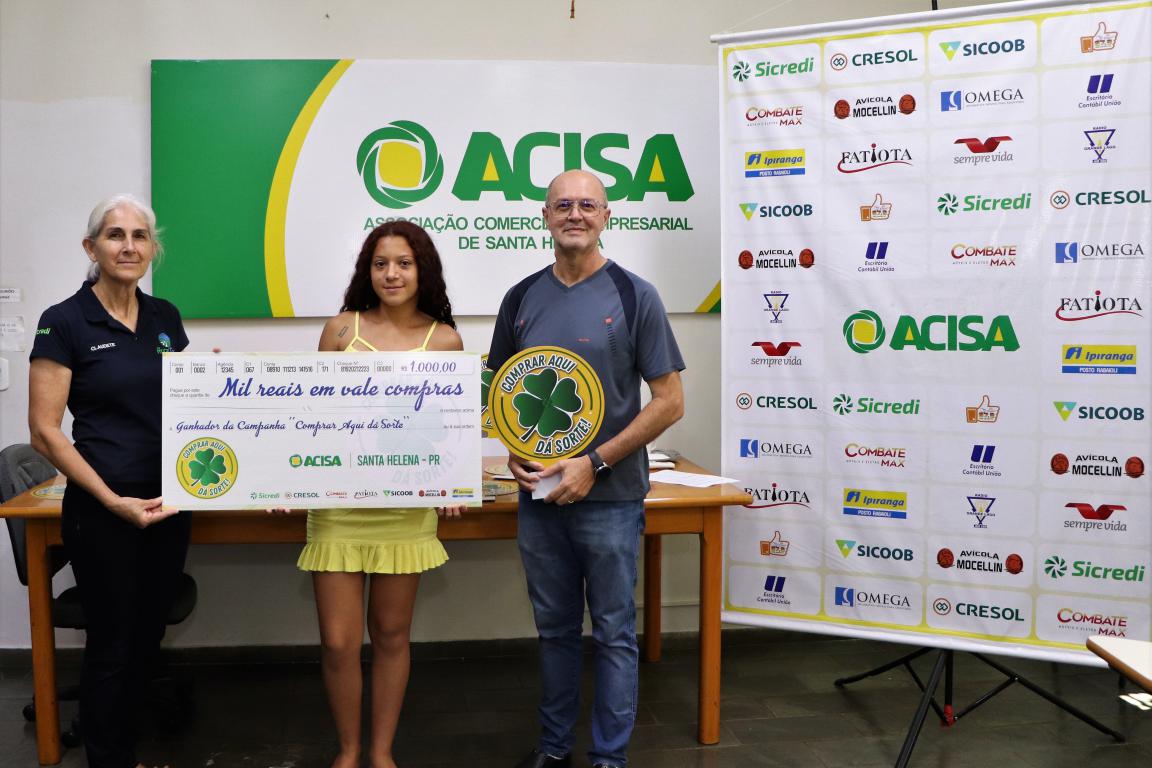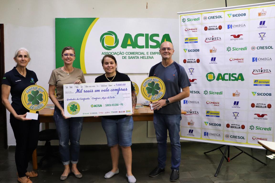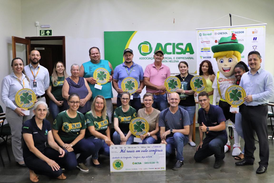 A Associação Comercial e Empresarial de Santa Helena entregou nesta segunda-feira (30), seis vales-compras de R$ 1 mil, um total de R$ 6 mil, para os últimos sorteados da campanha Comprar Aqui dá Sorte. Outros R$ 4mil já foram distribuídos aos ganhadores em sorteios que ocorreram em 15 de junho, relativo à promoção do Dia das Mães e 15 de setembro, contemplando a promoção do Dia dos Pais.