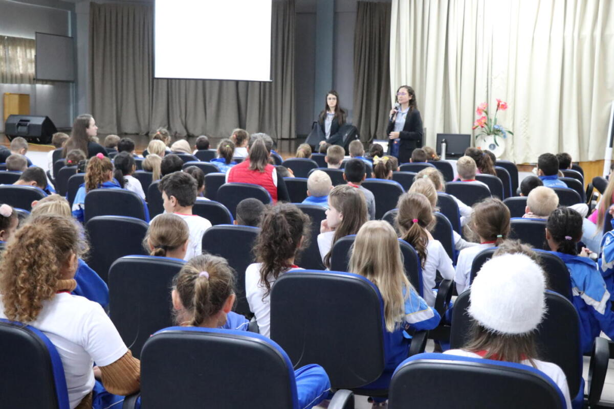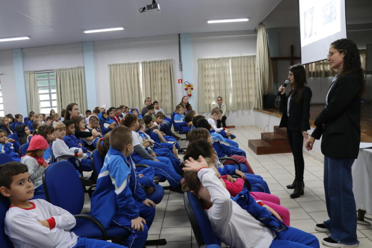 O trabalho inicial ocorreu no auditório da escola, com as turmas de 1º ao 5º ano do matutino. Na oportunidade a coordenadora do Creas, assistente social, Rafaela Melo Damasceno Couto e a psicóloga do Creas, Franciele Cristina Everling discorreram sobre as situações em que ocorre a violência sexual, tipos e formas de violência contra crianças e adolescentes. No período da tarde, o assunto será explanado aos demais estudantes.