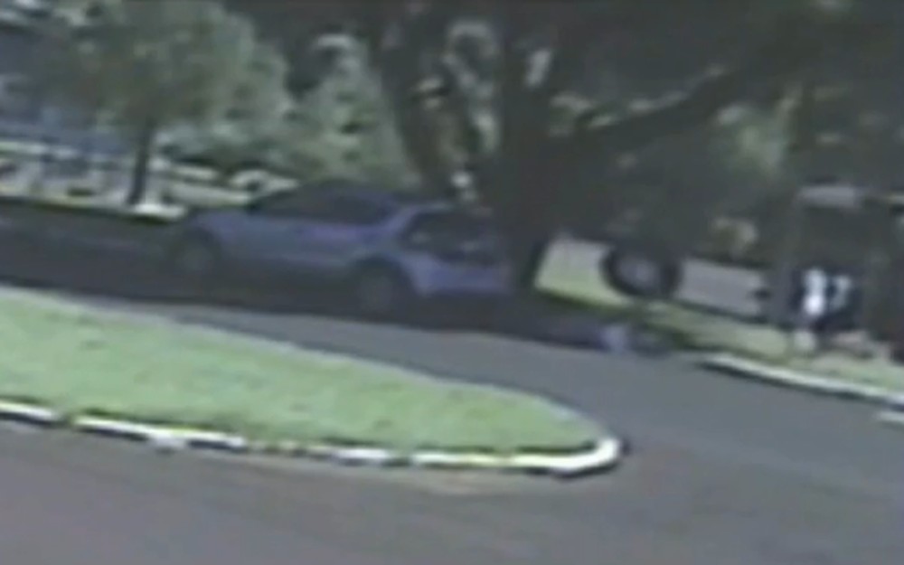 Imagens de uma câmera de segurança mostram o momento em que ela é atingida. O registro foi feito na segunda-feira (7).