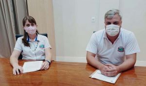 Secretários de Finanças, Jôseli Stein Lerner, e de Planejamento, Júnior Backes, de Entre Rios do Oeste: “No segundo semestre de 2020 houve falta de matéria-prima: sem o ligante não produz a massa, sem a massa não obtemos a aplicação do recape e, se não bastasse a dificuldade de produção da matéria-prima, o ligante é derivado do petróleo” (Foto: Patrícia Porto)