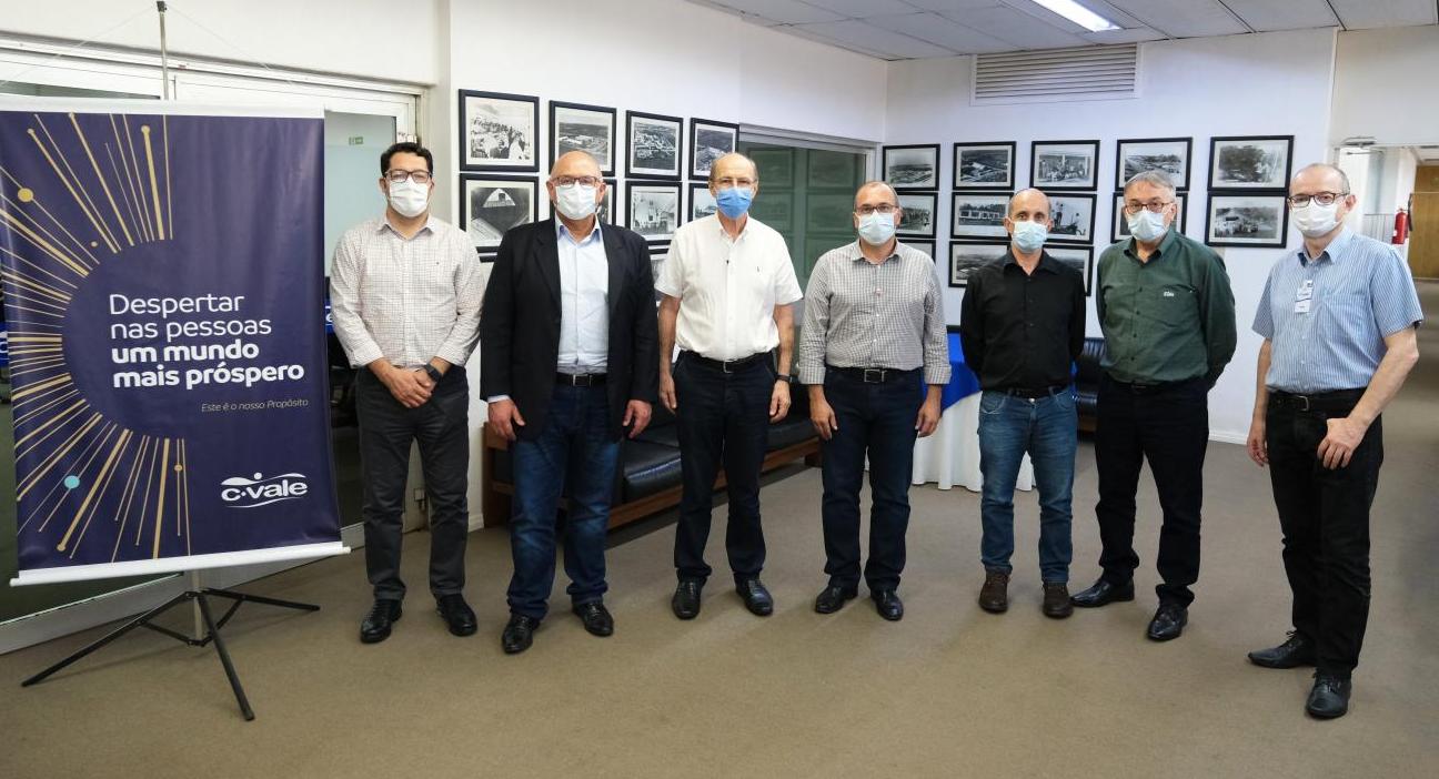A ampliação da linha da Ferroeste para impulsionar o transporte de cargas foi tratada em reunião na C.Vale. O presidente da Ferroeste, André Gonçalves; o coordenador do Grupo de Trabalho Ferroviário do Estado do Paraná, Luiz Henrique Fagunes; e o assessor do grupo, Juliano Rodrigues, discutiram o tema com diretores e gerentes da C.Vale. A cooperativa esteve representada pelo presidente, Alfredo Lang, pelo diretor-secretário, Walter Dal’Boit, gerente da Divisão de Comercialização, Edio Schreiner, e pelo gerente da Divisão Industrial, Reni Girardi.