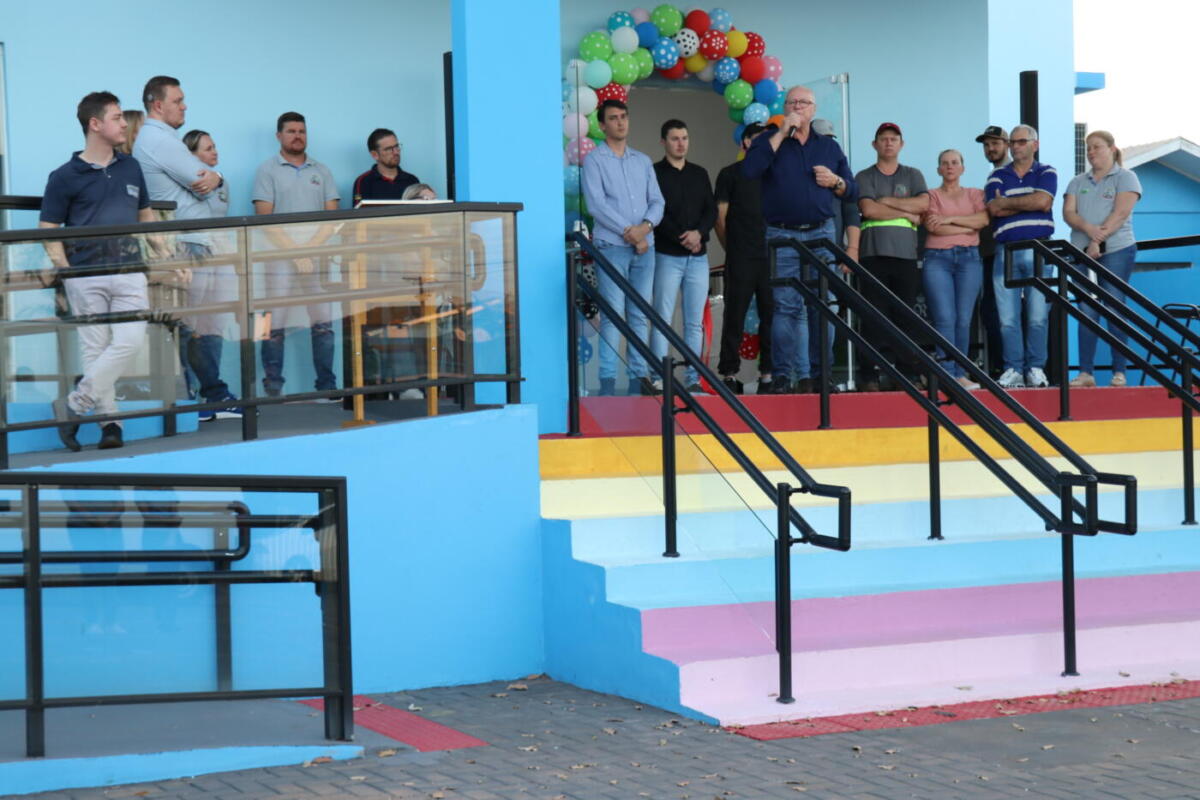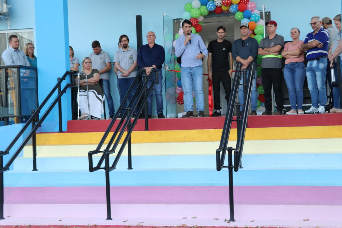 A obra, construída com recursos próprios, foi oficialmente entregue na tarde de quarta-feira (3) pelo prefeito Leomar Rohden, o Mano, vice-prefeito, John Nodari, secretária de Educação e Cultura, Cristiane Bonatto, vice-presidente da câmara de vereadores, Dante Mundt, secretários de Obras e de Planejamento, Djoni Rohden e Lucas Blatt, vereadores, secretários, pastores, diretores dos educandários, entre outras autoridades e servidores públicos.