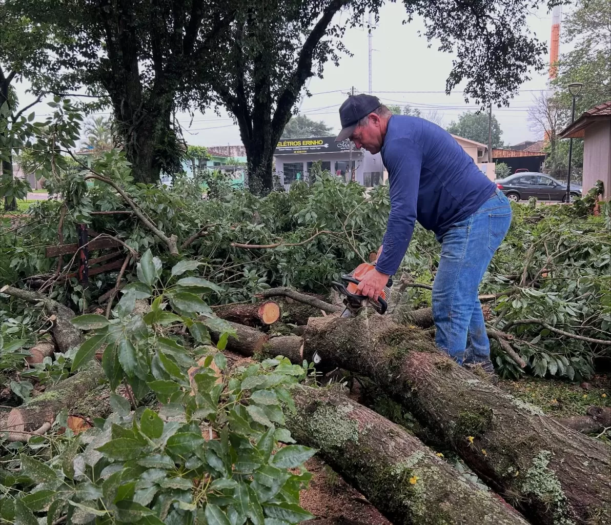 O serviço está concentrado, principalmente, na área central da cidade, com destaque para a região da Praça Willy Barth, onde ocorre a limpeza das vias, recolha de galhos, retirada de entulhos e corte de árvores que foram derrubadas pelos ventos.