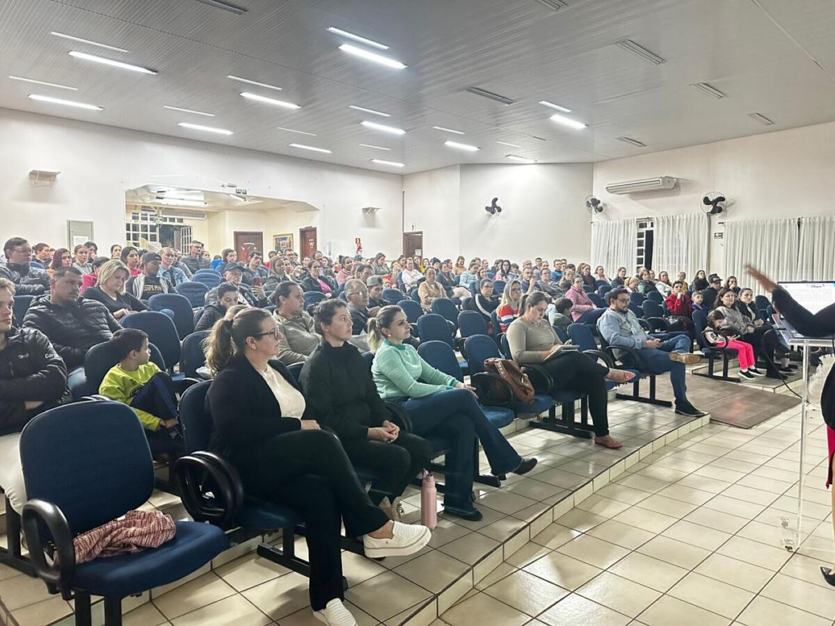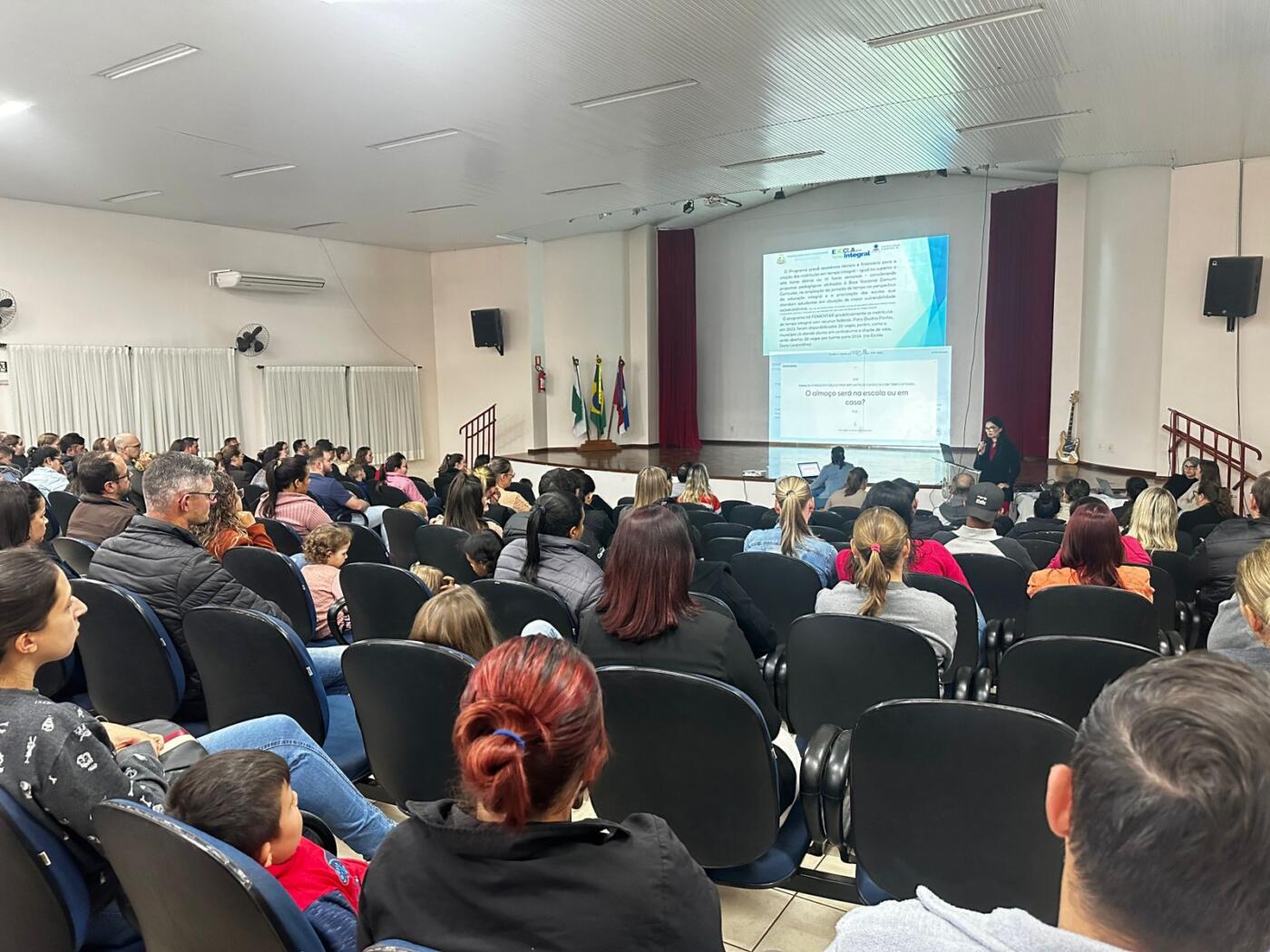 Com o intuito de consulta de interesse em matrícula para educação em tempo integral na rede municipal de ensino, a Secretaria de Educação de Quatro Pontes realizou no dia 14 de setembro uma assembleia de pais na Casa da Cultura, contando com a participação da secretária Eliane Biesdorf, comunidade escolar e geral, pais, professores, educadores infantis, trabalhadores da educação, servidores da escola e secretaria, membros dos Conselhos Escolares, Conselho Municipal de Educação e representantes do Conselho do Fundo de Manutenção e Desenvolvimento da Educação Básica e de Valorização dos Profissionais da Educação (Fundeb).