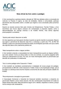 A Associação Comercial e Industrial de Cascavel (Acic), por exemplo, aponta que a proposta avançou, mas ainda há preocupações a serem consideradas. A entidade pede revisão sobre a redução no desconto da tarifa, maiores esclarecimentos acerca do degrau tarifário e se posiciona contra a nova praça prevista para seu “quintal”, entre Toledo e Cascavel. Confira a nota na íntegra.