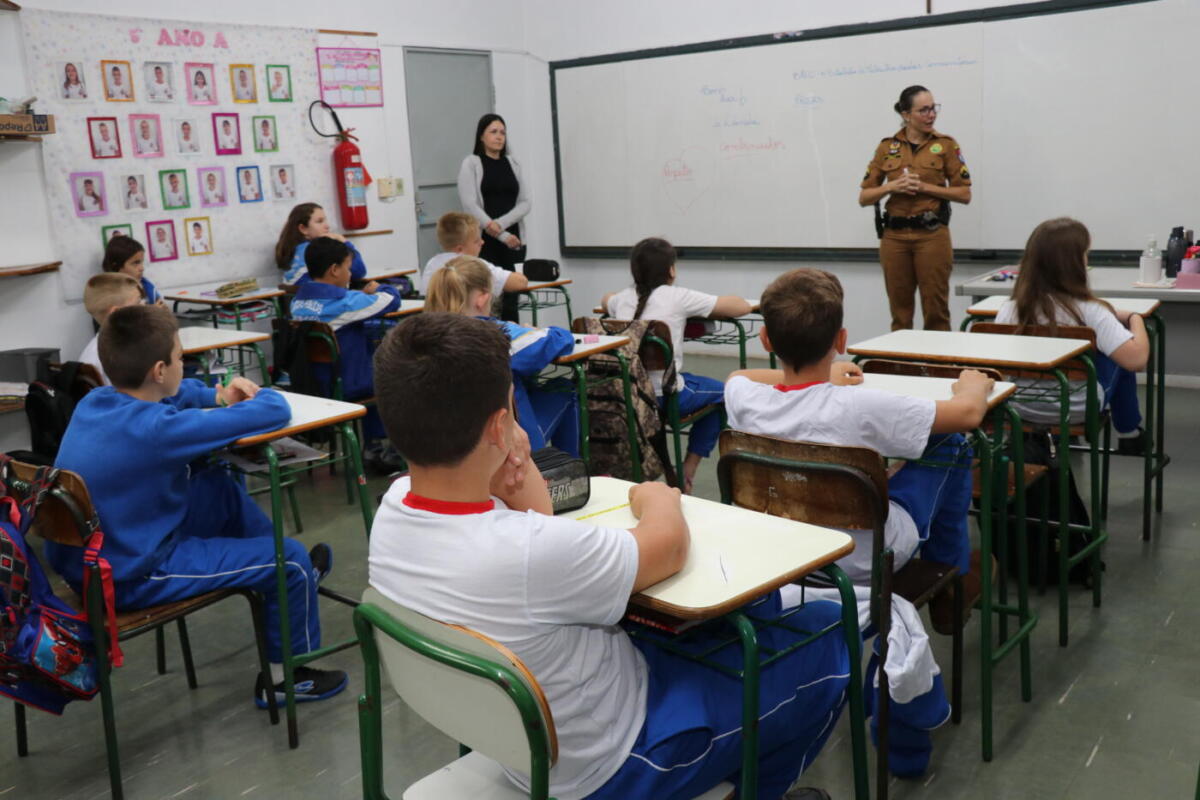 A partir de hoje (12), os estudantes das três turmas de 5º ano da Escola Municipal Marechal Deodoro, de Pato Bragado, passam a participar das aulas do Programa Educacional de Resistência às Drogas e à Violência (Proerd) 2022.