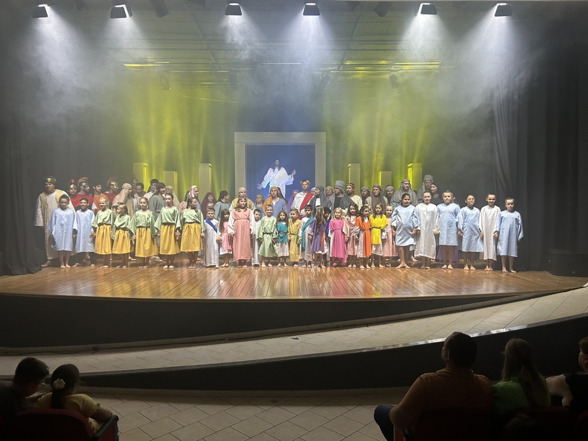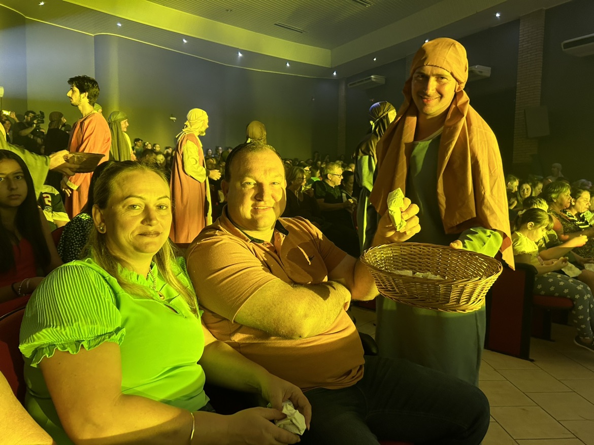 Com a Casa da Cultura de Mercedes lotada na noite desta sexta-feira Santa (7), centenas de pessoas se emocionaram com o “Auto de Páscoa, Ele Vive”. A vida de Jesus foi retratada por mais de 70 artistas mercedenses, que ao final do espetáculo, acompanharam o público emocionado se levantar para uma forte salva de palmas.