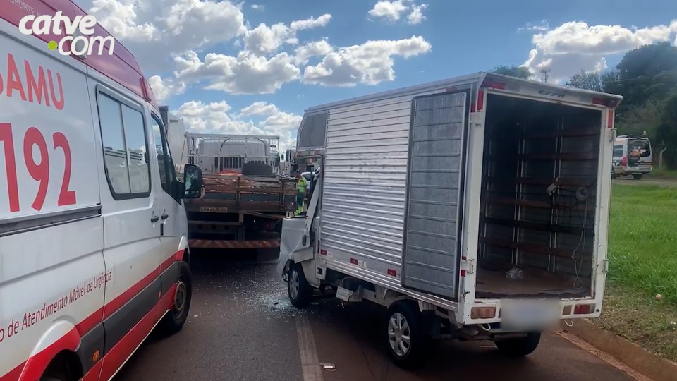 O acidente aconteceu na pista sentido Foz do Iguaçu, entre o Viaduto da Carelli e o Trevo da Portal. O que foi apurado no local é que o caminhão Effa atingiu a traseira de outro caminhão, o forte impacto fez com que o para-brisa quebrasse e a lataria ficasse amassada. O homem, de 30 anos, estava sozinho no Effa e fazia o transporte de tintas, ele sofreu ferimentos leves.