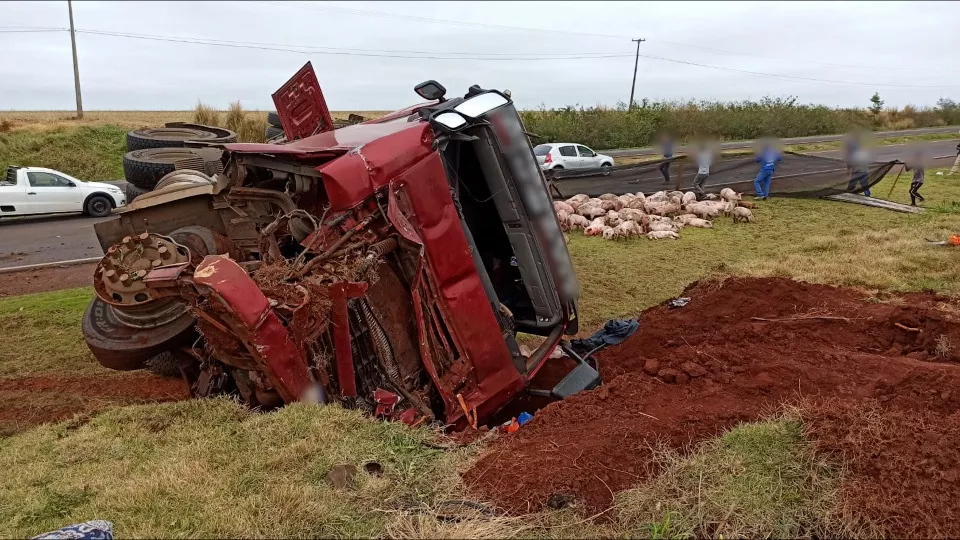 Segundo a PRE (Policia Rodoviária Federal), a carreta Scania Bitrem seguia na rodovia quando foi atingida na traseira por um veículo carregado com leitões. Na sequência, o motorista da carreta que transportava suínos perdeu o controle da direção, bateu contra um barranco e tombou. Devido ao acidente, parte da carga ficou espalhada pela rodovia, o que deixou vários porcos mortos e interditou parcialmente a via.