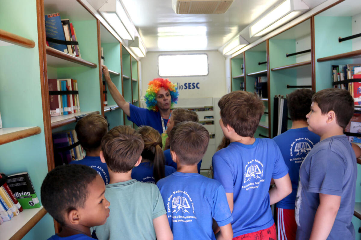 Para o lançamento, foram convidados os estudantes dos 4º e 5º ano da Escola Municipal Pedro Álvares Cabral, do distrito de Pérola Independente e do 5º ano da Escola Municipal Professor Leopoldo Kuroli. À tarde, a unidade esteve no CMEI Casinha Feliz. Além de assistir a uma contação de histórias, eles puderam conhecer de perto o BiblioSesc e ter o primeiro contato com os livros disponíveis.