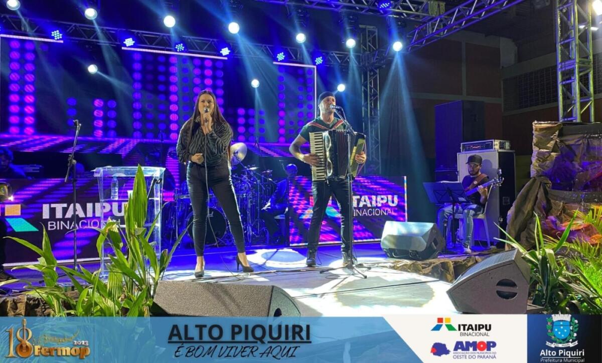 A etapa classificatória do Festival Regional dos Municípios do Oeste do Paraná (Fermop), promovida na sexta-feira (4), no município de Alto do Piquiri, rendeu o 1º lugar à intérprete bragadense, Biolange Maravilha, na categoria popular com a canção “Granada” e o 2º lugar para a dupla Alessa & Juliano, na categoria sertaneja adulto, com a música “Malaguena Salerosa”.