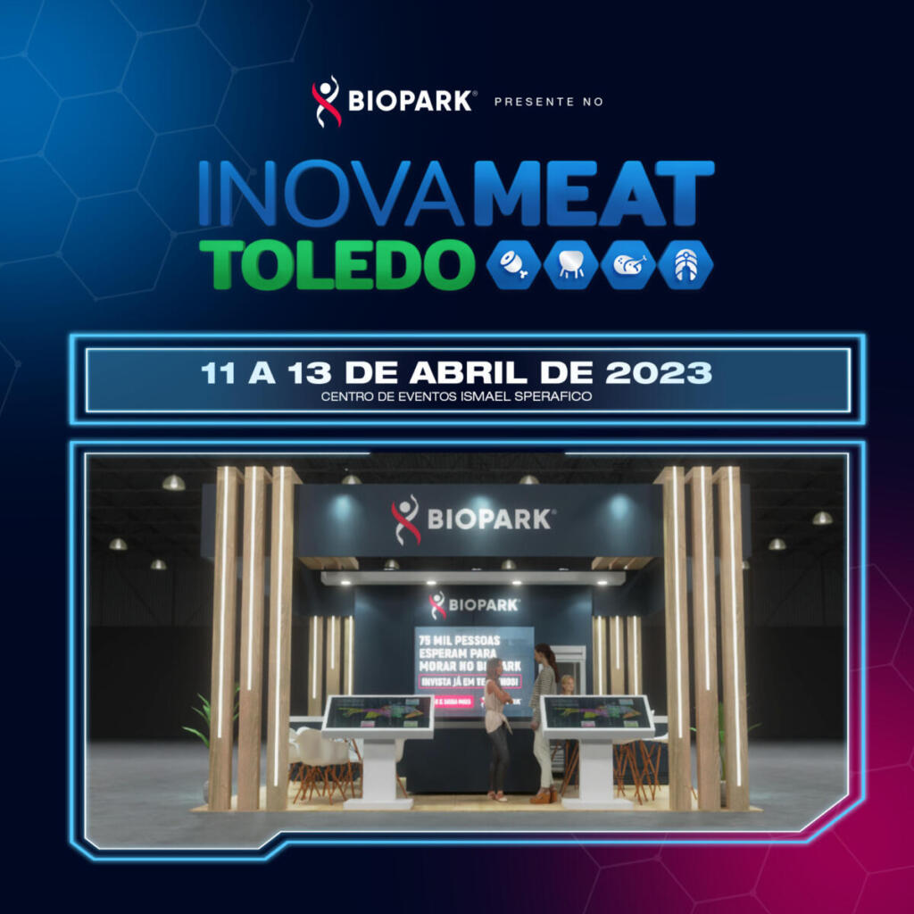 O Biopark já é presença confirmada na 2ª edição do Inovameat Toledo, evento de inovação na produção de proteína animal, que acontece entre os dias 11 e 13 de abril, no Centro de Eventos Ismael Sperafico. Na ocasião, será possível conhecer todas as possibilidades que o Ecossistema oferece nos eixos de negócio, educação e setor imobiliário.