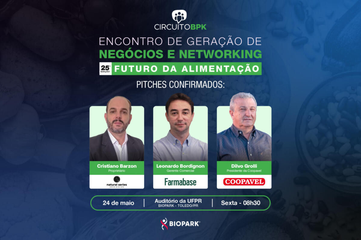 O futuro da alimentação está se inclinando cada vez mais para sustentabilidade e saúde. Inserido neste cenário, o Biopark promove neste mês o Circuito BPK, com o tema “Futuro da Alimentação”. O evento é gratuito e acontece no dia 24 de maio no auditório da Universidade Federal do Paraná – Biopark, a partir das 8h30.