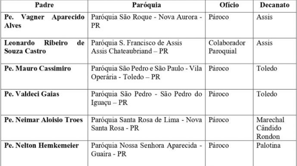 Fazemos saber que, tendo em vista as necessidades pastorais de nossa Diocese, depois de ter ouvido o Conselho de Presbíteros, havemos por bem realizar as seguintes transferências e nomeações para 2023: