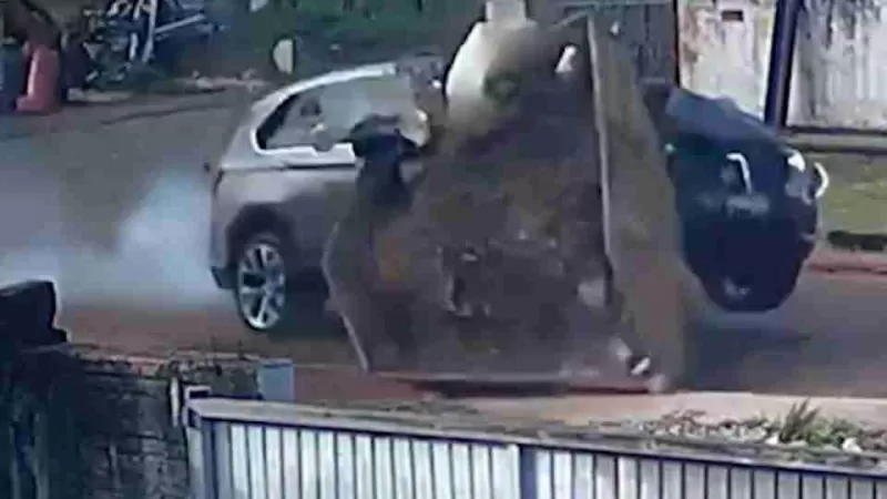 Conforme as informações, a BMW X5 seguia pela Rua Três e, ao acessar a Rua Maria José Viana, acabou colidindo violentamente contra a caçamba de entulho. Com o impacto, a BMW acabou tombando sobre a via.