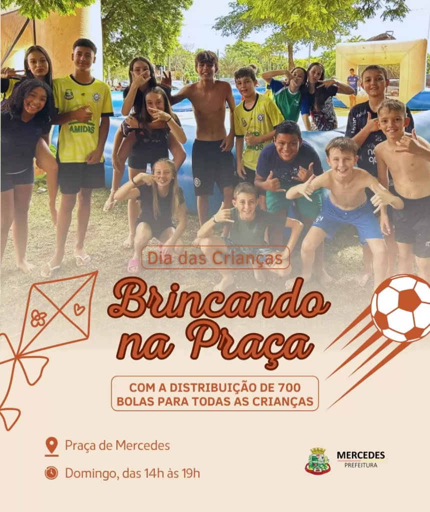 A Secretaria de Assistência Social de Mercedes realiza neste domingo (19), das 14h às 19h, mais uma edição do “Brincando na Praça”, evento preparado como presente pelo Dia das Crianças.