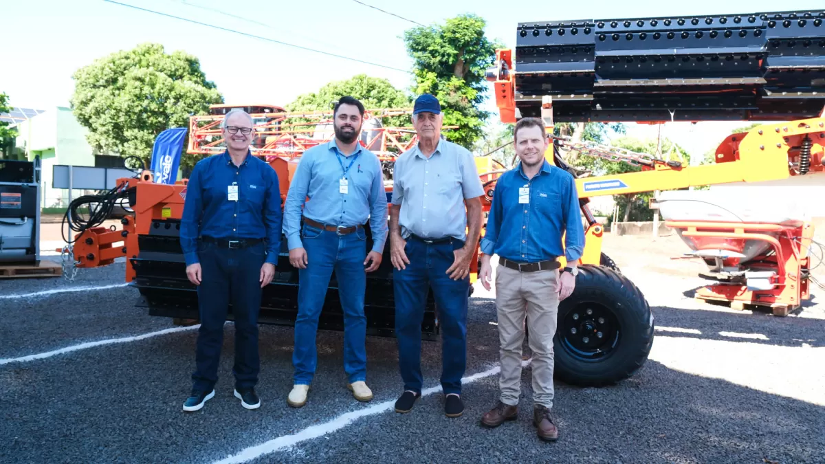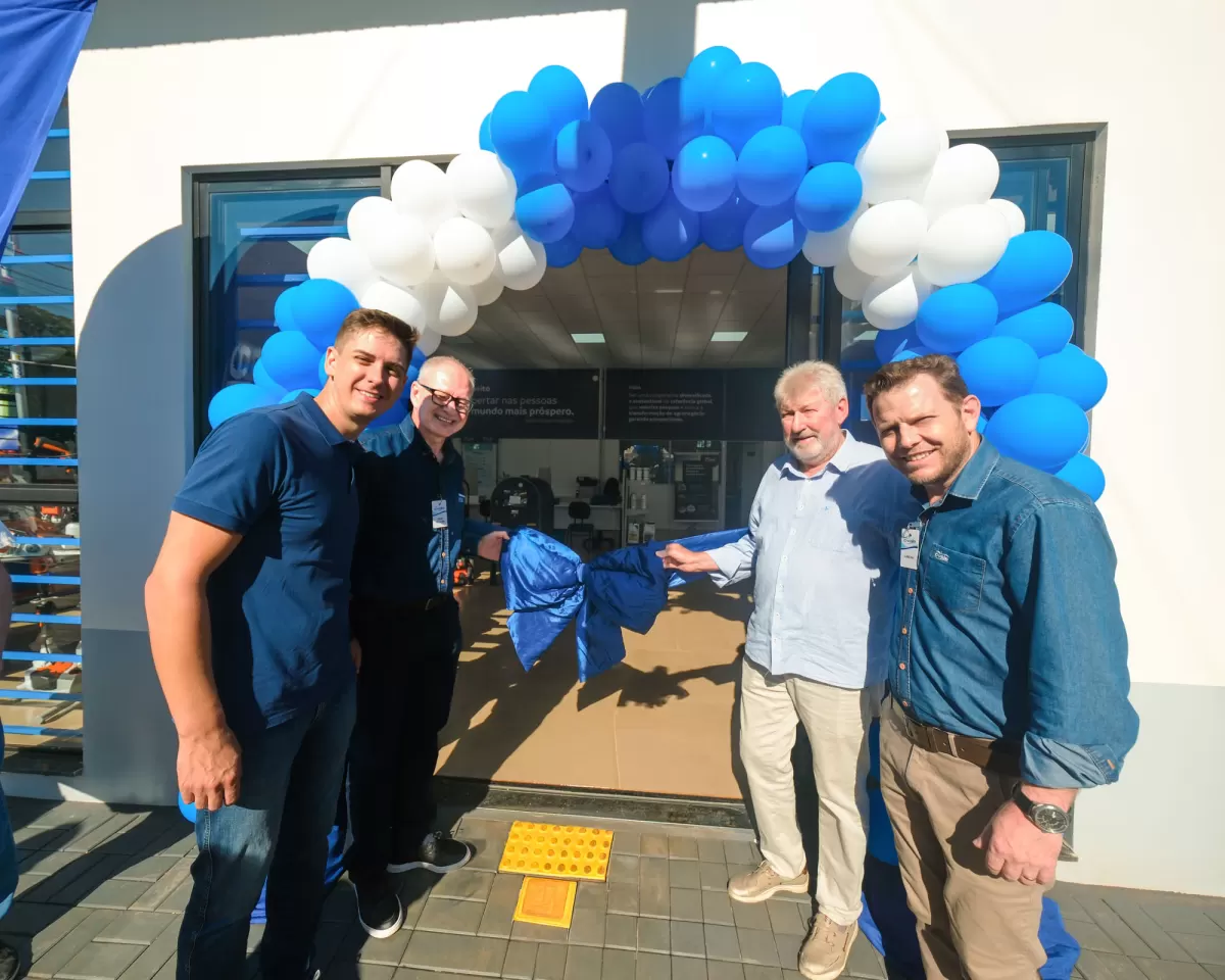 A solenidade de abertura reuniu o prefeito Lari Hitz, o presidente da Associação Comercial, Industrial e Agropecuária, Kassio Alberto Rusch, o gerente regional da cooperativa Edir Müller, o gerente da unidade local da C.Vale, Damian Sponchiado, e o gerente do Departamento de Máquinas e Acessórios, Renato Figueiroa.