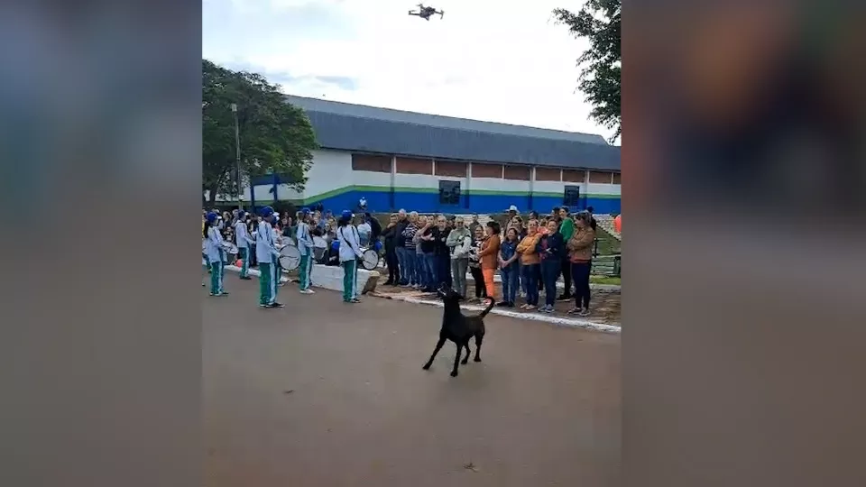 Durante as apresentações de 7 de Setembro, uma cena chamou a atenção dos moradores de Boa Vista da Aparecida (PR): um cachorro, de cor preta, ficou espantado com o drone que captava as imagens do desfile na manhã desta quinta-feira (7).