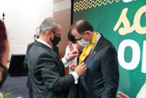 “Hylo deixou um grande legado, ao qual todos nós, empreendedores, devemos muito. Sou muito grato por receber a comenda que leva o nome dele nesta noite”, disse Khaled Nakka, que acabava de se tornar o sétimo comendador da Caciopar. A entrega da comenda ao ex-presidente da Coordenadoria, ex-presidente da Garantioeste e atual da Associação Comercial e Empresarial de Vera Cruz do Oeste foi um dos pontos altos da noite. “Essa é uma grande honra. Jamais vou esquecer desse momento”, afirmou Khaled. Ele falou das dificuldades impostas pela pandemia e lembrou de pessoas queridas que a doença levou. Superação e resiliência também foram pontos que ele abordou.