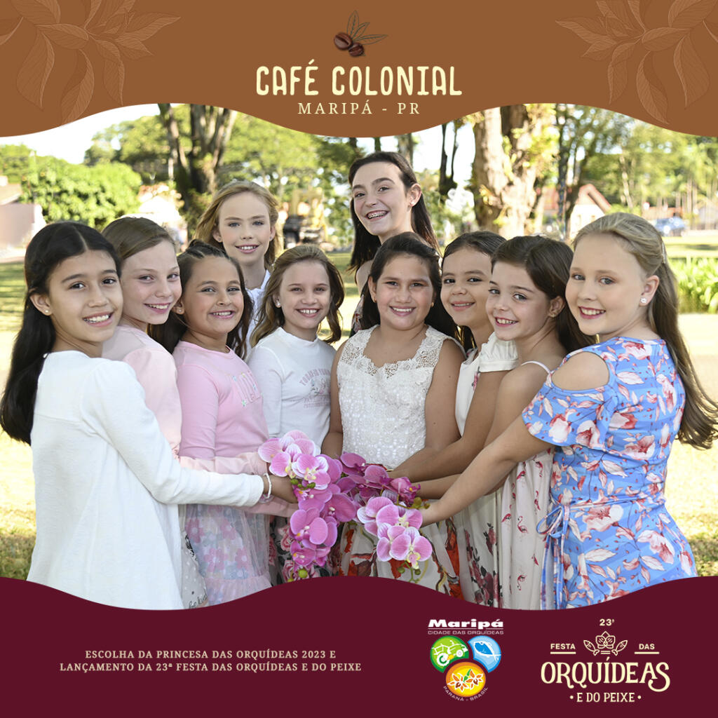 Este ano, dez meninas são candidatas a Princesa das Orquídeas 2023, que representará o Município de Maripá na 23ª Festa das Orquídeas e do Peixe e em outros eventos oficiais até o próximo ano. São elas: Bianca Sibeli Schneider, Brenda Rafaela Zoz de Miranda, Camila Beatriz Reschke, Camile Vitória Blodorn, Emilly Vitória Zimmermann Braun, Laura Toaldo, Milena Pandini De Souza, Natiele Friedel De Almeida, Paloma Vitória Da Silva Porto e Yasmin Rockteschel.