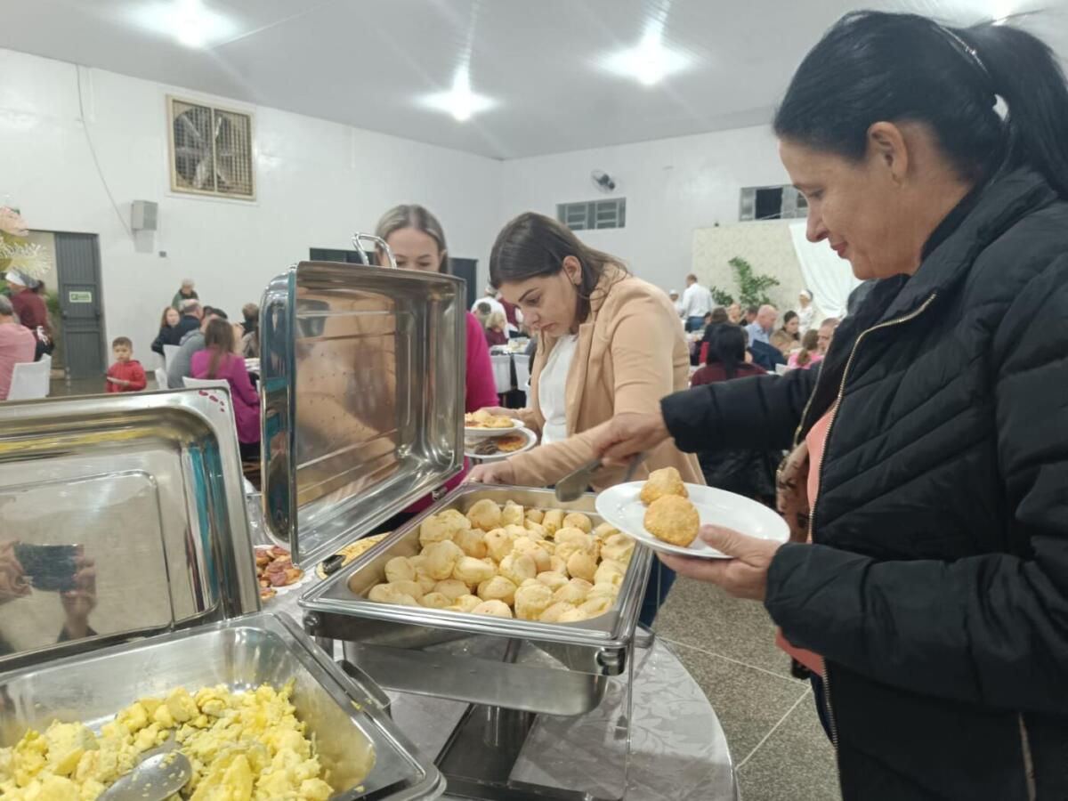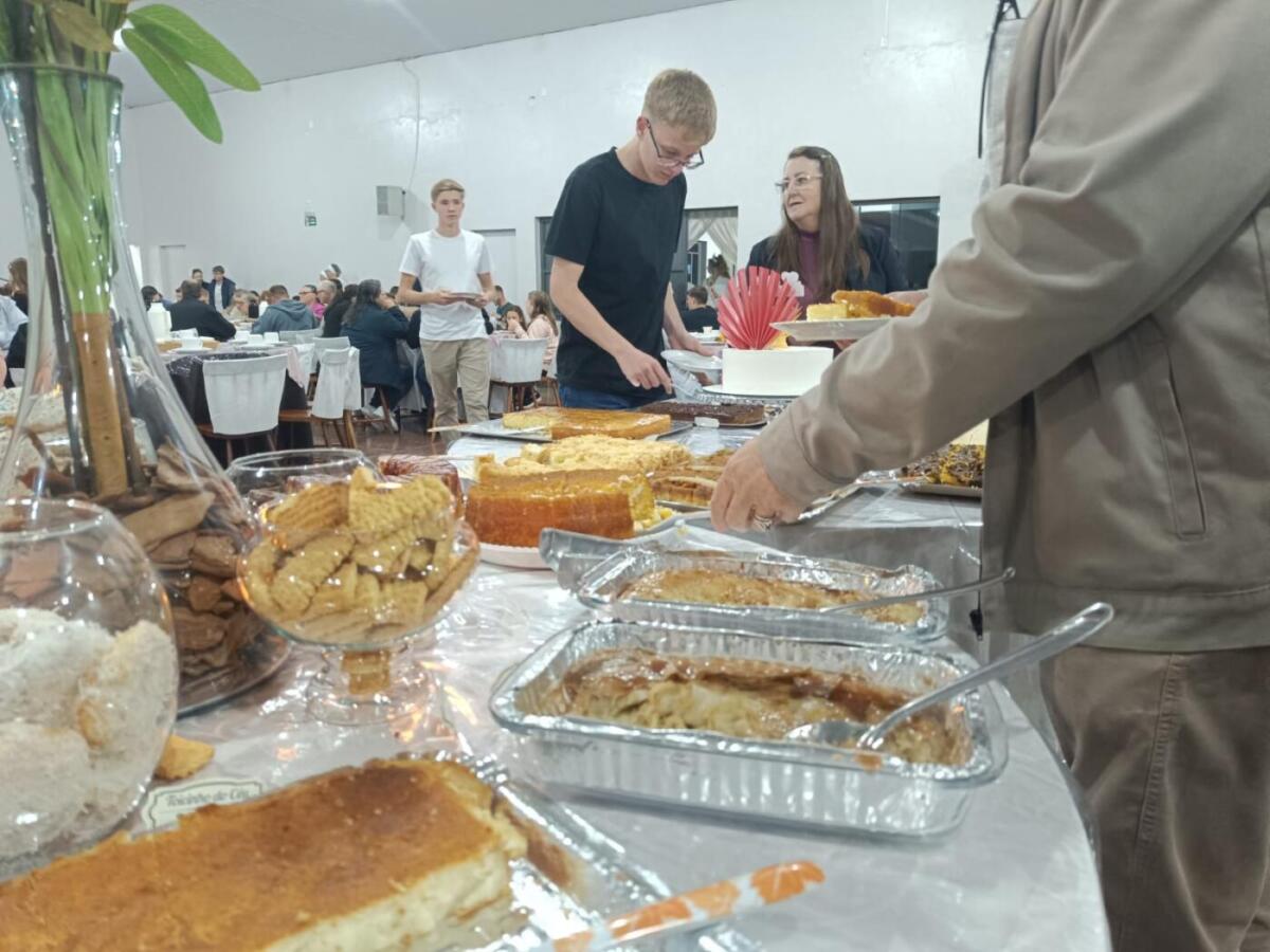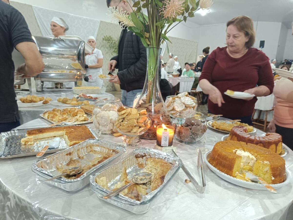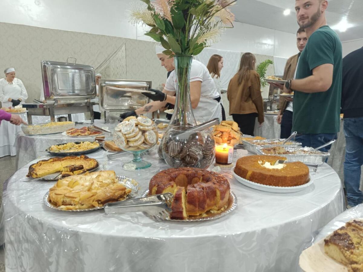 Com mais de 60 opções de quitutes, a maioria dos pratos é proveniente de produtores rurais locais. O cardápio diversificado inclui ampla seleção de bolos, doces, cucas, tortas doces e salgadas, strudel, rissoles, pães, bolachas, roscas, frios, embutidos, chimias e muito mais. Veja fotos ao final da matéria!