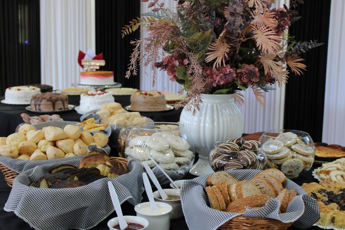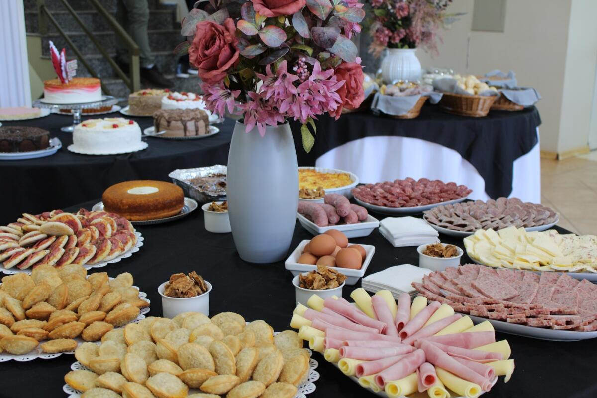 O cardápio diversificado incluirá uma ampla seleção de bolos, doces, cucas, tortas doces e salgadas, strudel, rissoles, pães, bolachas, roscas, frios, embutidos, chimias e muito mais.