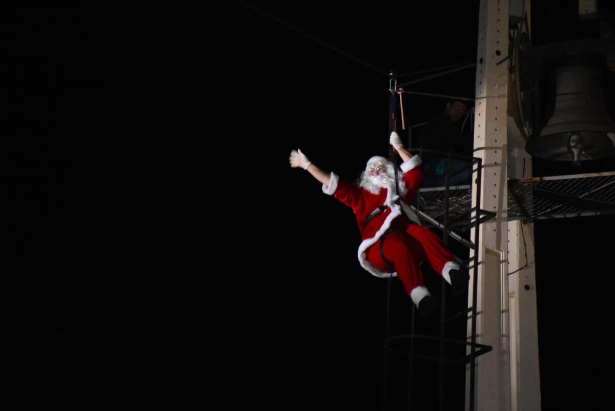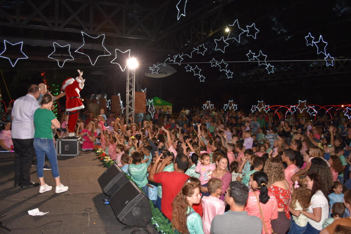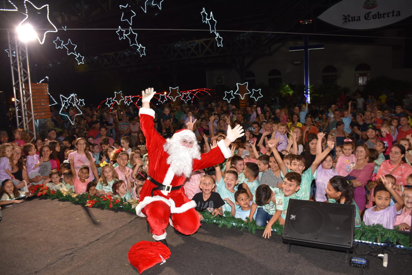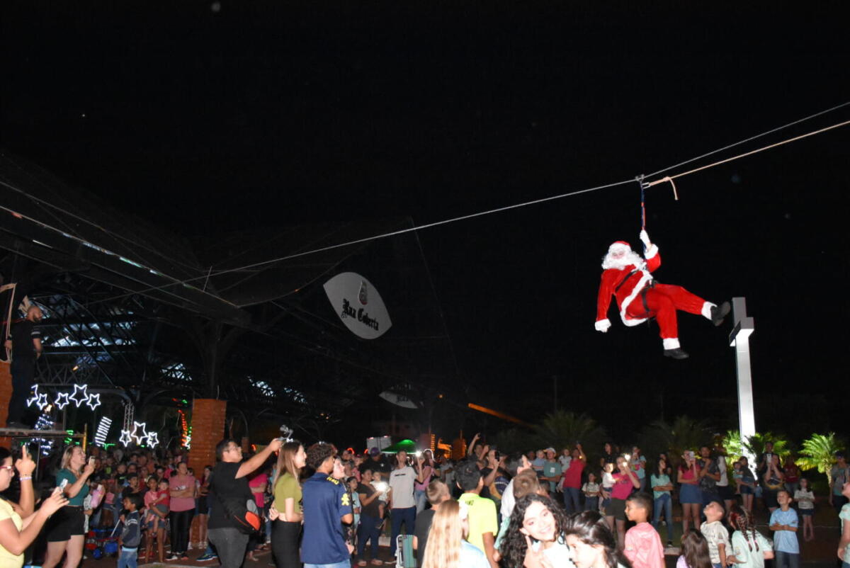 O auge da noite foi a chegada de quem tão bem simboliza o Natal e é tão aguardado pelas crianças: o Papai Noel. Ele veio de tirolesa e levou as crianças à loucura de alegria. Depois, o Papai Noel recebeu as crianças com doces em sua casa. Também foram acesas as luzes da decoração natalina, podendo ser prestigiada pelo público presente.