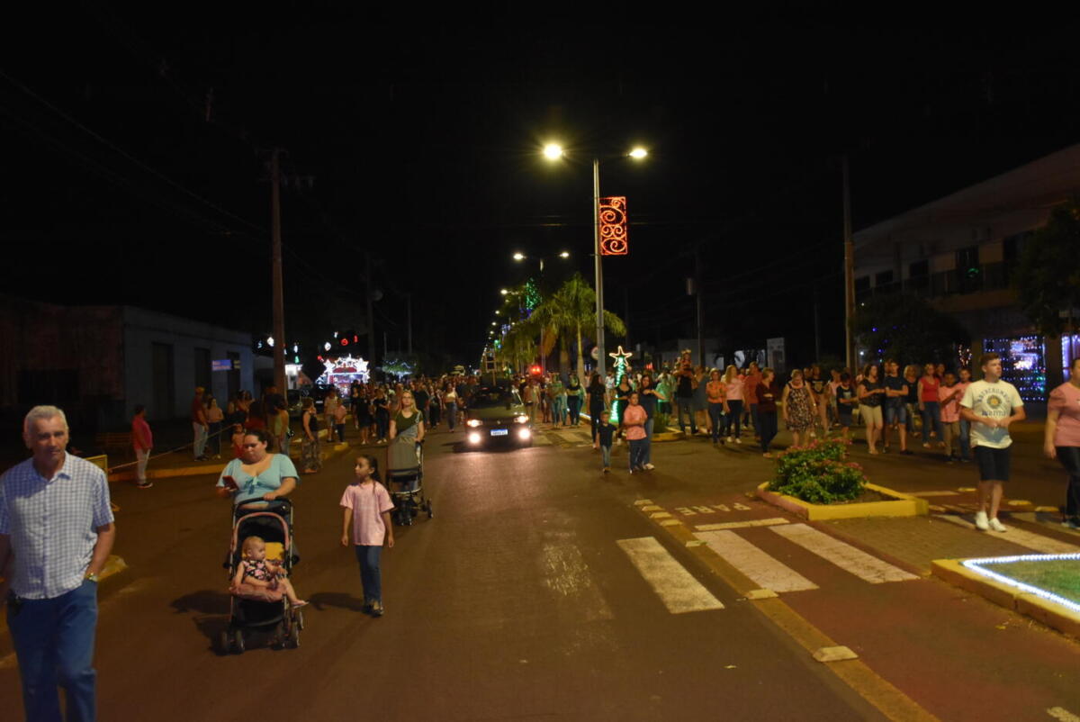 No decorrer do caminho, sendo da Avenida Presidente Epitácio até a rua coberta, foram oito paradas com apresentações de alunos da Escola Municipal Dona Leopoldina e EJA. O primeiro ponto era na Multti Casa, onde o Infantil IV A, Infantil V A e o 1º ano A e B apresentou a música “Melhor Presente”. Em frente à casa de Lourdes Dahmer, o 3º ano B, 5º ano C e EJA apresentou a música “Emanuel”. A terceira parada era em frente à Karin Fotografias, local que a música “Natal, tempo de alegria” foi encenada pelo Infantil V B, Infantil V C e Infantil V D. Depois, a música “Tesouro” foi apresentada pelo 2º ano B e 3º ano A em frente à Fruti Sabor Sorveteria.