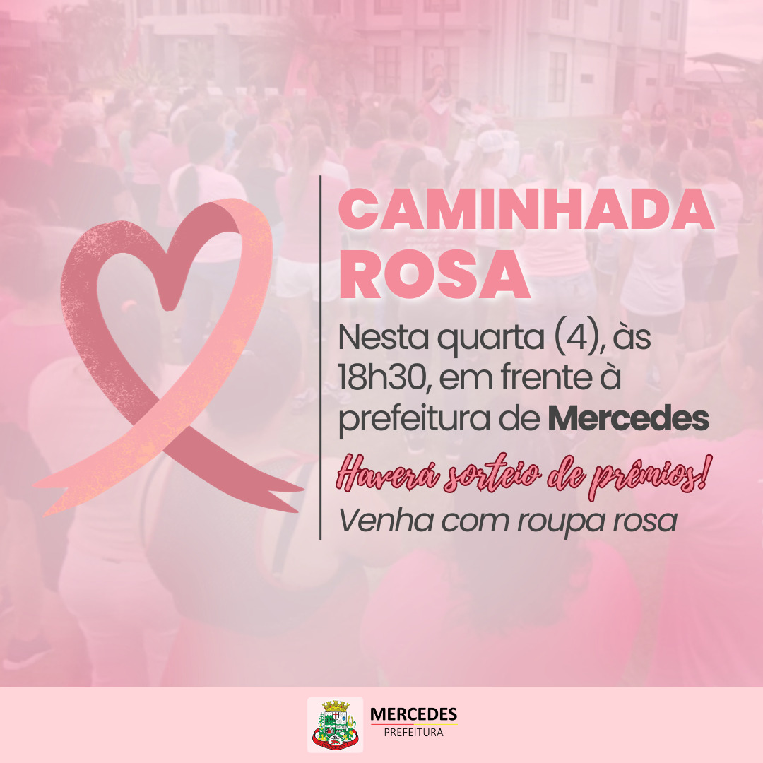 Com o intuito de conscientizar a comunidade sobre a importância da prevenção do câncer de mama, a Secretaria de Saúde de Mercedes promoverá mais uma edição da Caminhada Rosa nesta quarta-feira (4).