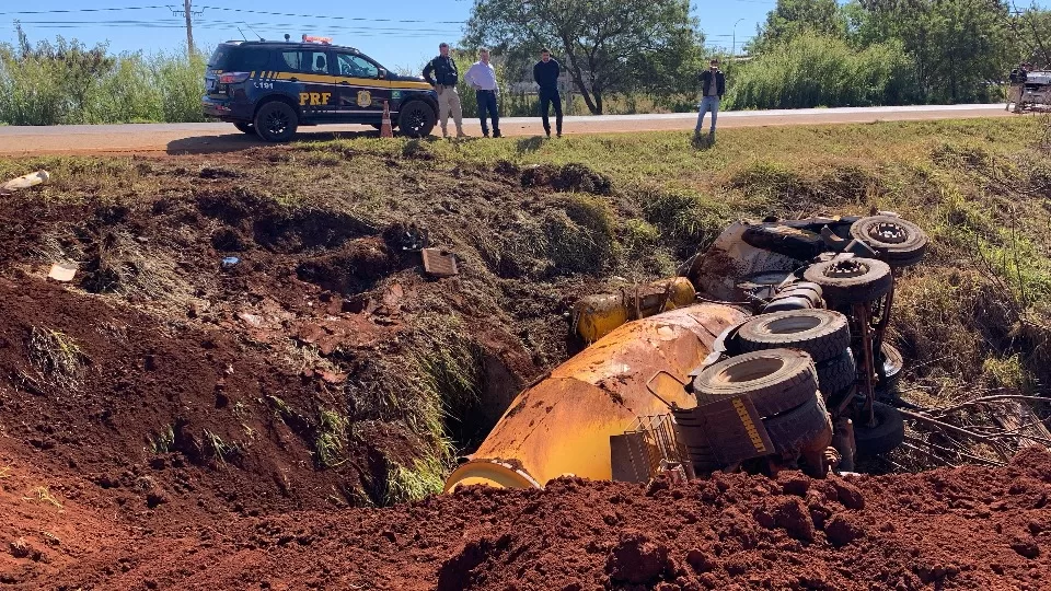 O motorista do caminhão de concreto sofreu ferimentos leves. A Polícia Rodoviária Federal foi acionada para registrar a ocorrência.