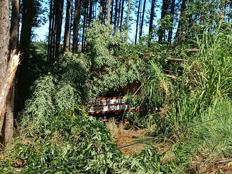 O caminhão colidiu contra várias árvores de eucalipto, que acabaram caindo. Alguns dos eucaliptos caíram sobre a rede de alta tensão da Copel.