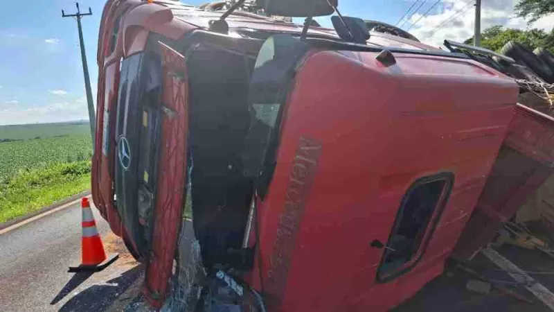 Um caminhão tombou na PR-364, em Palotina, no Oeste do Paraná, na tarde de sábado (20). O motorista, de 33 anos, ficou ferido e precisou de atendimento médico.