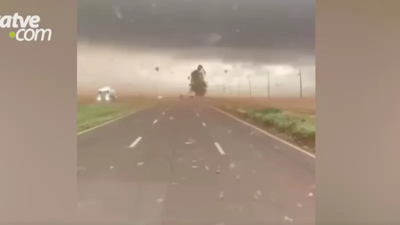 Um caminhoneiro que seguia pela rodovia sentido Toledo a Cascavel registrou o momento em que uma forte ventania atingiu a região na tarde de quinta-feira (16). As imagens mostram o tempo fechado, nuvens escuras, poeira cruzando a pista e galhos caindo sobre a rodovia, dificultando a visibilidade e oferecendo risco aos motoristas.